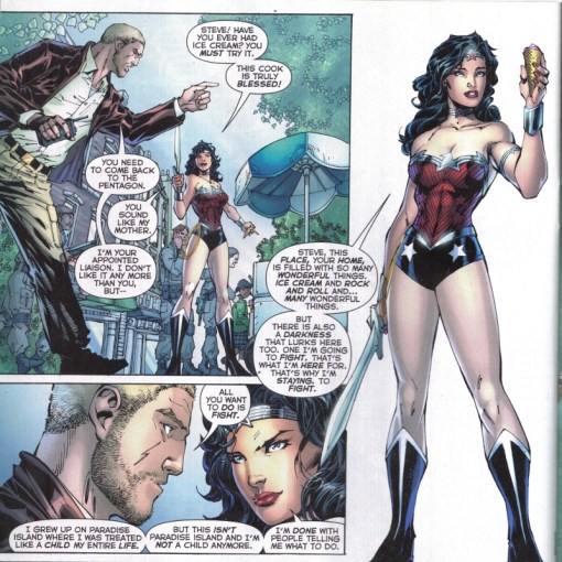 There is also an imposter posing as Wonder Woman in this book. I mean there has to be. This must be part of the plot Johns has set up right? Because that is not the Wonder Woman I know, or have read or seen in any comic, movie, TV show, cereal box, toy store, EVER!