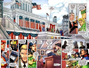 PANEL 8, 9, and 10: Why are they having this conversation on the podium while The President and the world are thanking them for saving their lives? Just shut the hell up about being friends and being a team and just be grateful to them and humble. I can’t stand these super-heroes. What a bunch of whiny little babies.