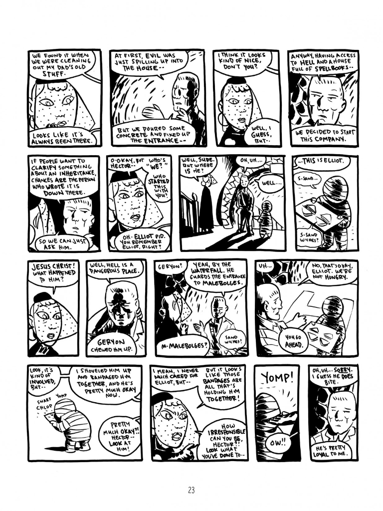 Zander Cannon’s Heck tells the story of a former high school football star who discovers a gateway to hell in the basement of his father’s spooky house. The enterprising Hector starts up a messenger business that allows clients to contact their dearly departed, and by the end of chapter one we’re prepped for a big case. The adventure features Dante’s geography (especially rewarding for anyone similarly enamored by The Inferno), a beautiful grieving widow, temporal detective games, and a shambling sidekick barely held together by bandages.