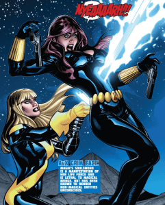 Finally, and most importantly, Vs. 3 gives us the two scoring chances we were all looking forward to this week. This all-Russian, all-Blue Moon issue might be the silliest of the already literacy-optional series. In fact, the dialogue is so pointless that it didn’t even faze me that half of it was written in Cyrillic. Thing and Colossus punch a lot, and the Big Russkie reflects dramatically on the demon inside him. Decision: Colossus. In the second half of the double-feature, Peter’s little sister gets a chance to reflect on the demons around her. And Black Widow shoots them. Remember that scene in the Avengers movie where ScarJo is popping caps in alien ass, prompting all the uninitiated theater-goers in your vicinity to wonder audibly about whether or not she has any powers? It’s like that, but with limbo monsters, and a fat soulsword through her back. Because Russians fight dirty. Decision: Magik.