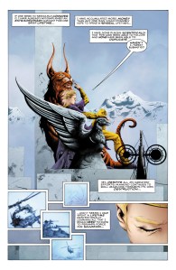 We’ll pause here to talk about Jae Lee’s art again. I’ve been a fan of Lee’s since I first saw his work on Namor and The Inhumans for Marvel, and Hellshock for Image Comics back in the 90’s. His style has changed over the years and now, if you took a page from Ozymandias and compared it to one from Hellshock you would think they were drawn by two different people. Lee has grown in my opinion into a better artist and his work now is lighter and less “dark”. Also, he is doing more with backgrounds then he did in the 90’s. It seems lee has put down the Ink pen in favor for a pencil.
