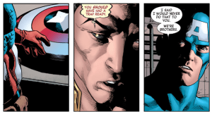 Bendis returns to the Mamet-ian dialogue-driven tension that made his contributions to Civil War so successful in week 19’s issue of New Avengers. Gene called it “the best issue where nothing happens.” True: no developments pertinent to the event showdown, and the conversation even pre-dates what eventually goes down with Namor, but these are the kinds of character interactions missing from the focal series. Read.