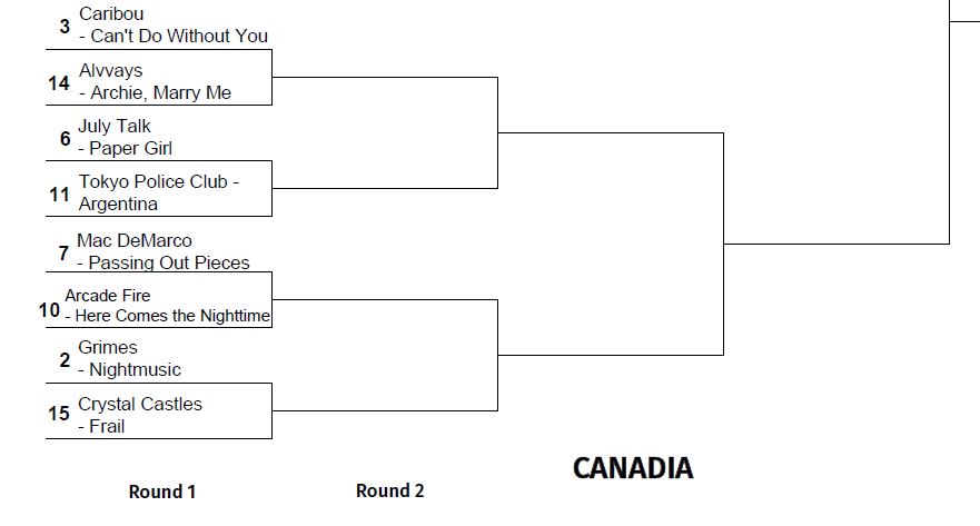 The polls for the second halves of the Canadian and Californian brackets in the 2015 Tune Tournament are going live today. First up, eight more tracks from our northern neighbors.