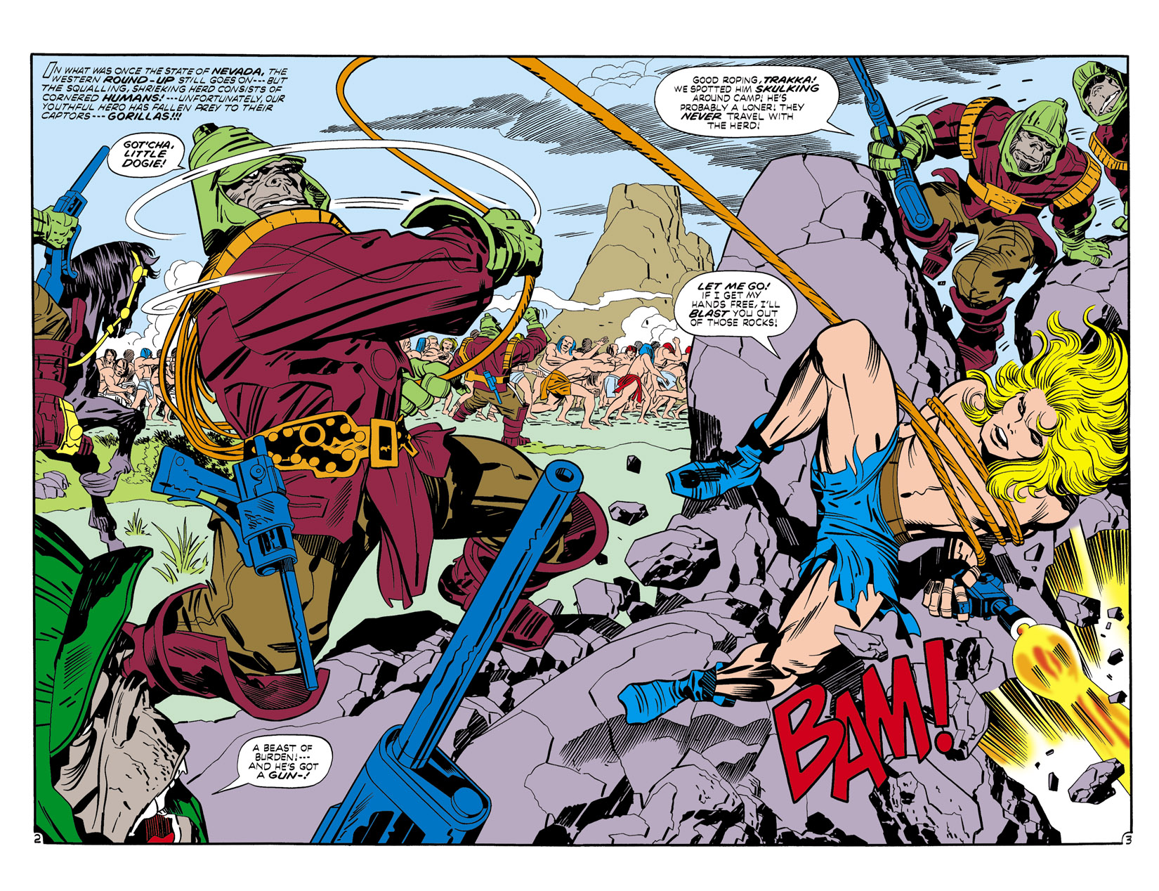 Still, that initial exposure to the world of Kamandi stayed with me. Though the boy’s name was soon forgotten, that imaginative world, that Planet of the Apes on acid, stuck with me until one day at the SF State campus bookstore I saw the Kamandi Omnibus Volume 1 for sale. There he was, there was that lost world again. So I sat down and read the entire thing, completely forgetting the two or so classes I had that day. It was okay though, my teachers would understand. There were gorillas riding jeeps into battle with a tiger army that was a bit more pressing than Philosophy of Art.