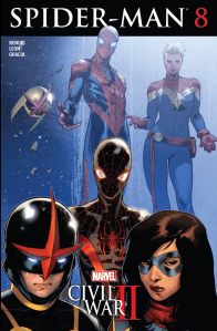 Writing and coordinating this summer’s major Marvel event may be taking up most of Brian Bendis’s time, but when you pick up this week’s Spider-Man #8, you get a clear reminder as to where his heart lies. This continues to be not just the best thing Bendis is doing right now, but one of the best series he’s ever written. This issue in particular, which includes other Bendisian favorites Jessica Jones and Luke Cage, delves deeper into the Civil War II ramifications of the Hulk standoff, features heartfelt interactions among the junior (soon to be Champions) Avengers, and marks an important turning point in Miles’s personal life. Great stuff. – MMDG