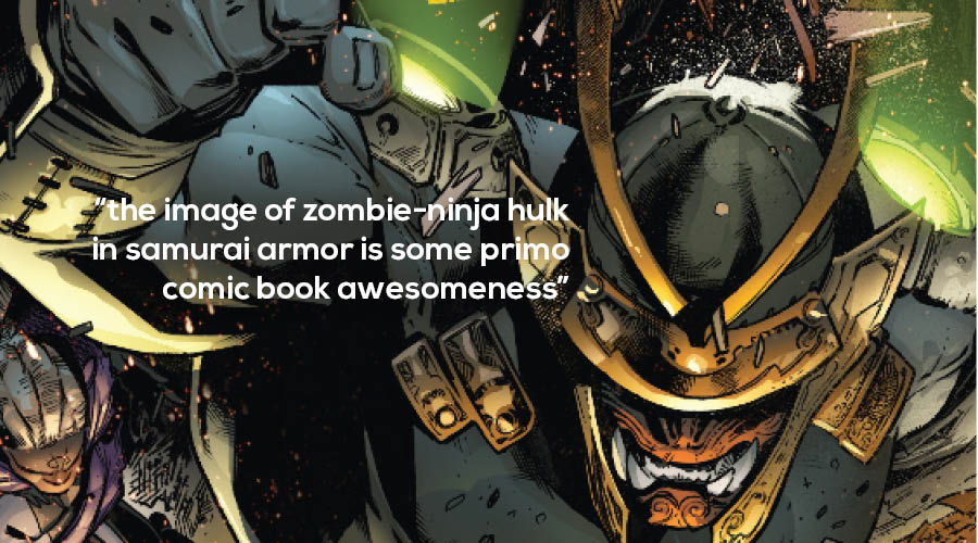 I was surprisingly pleased with this book. The team is an interesting hodge-podge of heroes with just enough comic relief to not be grating. The idea of Hulk being resurrected by ninjas is something I can definitely get behind, and the image of zombie-ninja hulk in samurai armor is some primo comic book awesomeness. I will keep reading this one for that alone, and it doesn’t hurt that the art is quite good. – IP