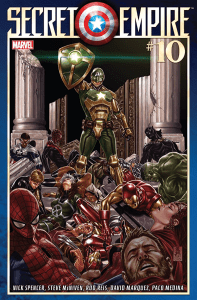 Perhaps Kirby’s most recognizable character, created with Joe Simon during the 40’s, is Captain America. The square-jawed bastion of justice started off as little more than WWII propaganda, but after being re-introduced to the Marvel universe in the 60’s, Cap helped inform and influence the modern superhero, awkwardly at first, trying to find his bearings in a Marvelous world of powerful humans with powerfully human flaws. It was a character Kirby himself returned to, in the 70’s, when Marvel gave him free rein on the title. Kirby in turn gave us some of the most wonderfully weird and imaginative comic book stories of his career. And this week, Captain America is the principal villain in the conclusion of Nick Spencer’s politically charged epic, Secret Empire #10. As expected, we see the return of the “true” Steve Rogers, but we also get nice insight into The Vanishing Point, featured in the Generations one-shots, setting the stage for this fall’s Legacy.