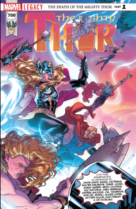Every once in a while a book comes out that reminds us not only how much we love the glorious spark and bombast of superhero comics, but also how much we’ve loved them over the years, and how much these characters, creators, and concepts have meant to us through various stages of our lives. One of the principal aims of Marvel’s Legacy initiative is to pay tribute to Marvel’s storied past while paving the way for an exciting future. No one has taken that more to heart, or done a better job embodying those ideals, than Jason Aaron. In Week 3 of Marvel Legacy, Aaron and a host of incredible artists drop the “god-sized” Thor #700 on the shelves, and, verily, the earth doth shake with its majesty.