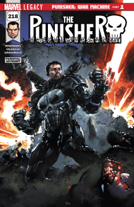 The popularity of The Punisher seemed to have peaked during the gritty anti-hero 90’s, in a forgettable era of comic book vigilantes that lost the plot, turning Golden Age ideology on its head and forcing us to examine what heroism really means. The Punisher began his comic book career as a villain, plan and simple, a foil for Spider-Man intended to underscore the fact that revenge and justice are not the same thing. But the character took on a life of his own, and for good reason — it’s a helluva concept and a brilliantly iconic design — and this week’s issue, the first under the Legacy imprint, hits shelves a few days before The Punisher stars in his own thirteen-episode series on Netflix.