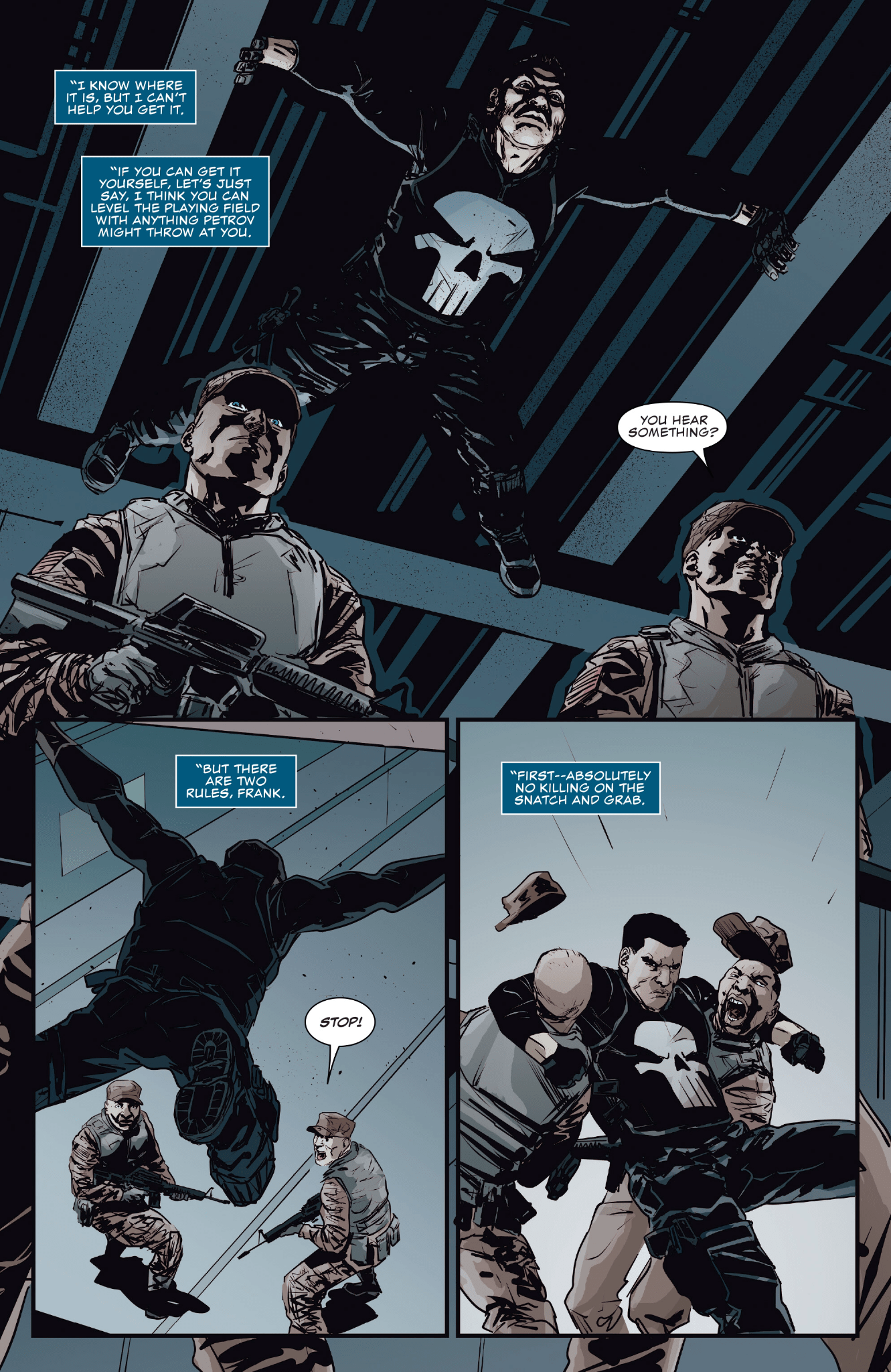 Rosenberg, an up-and-coming writer who has already tackled Marvel’s underworld with his Kingpin series, looks poised to make good on both goals. There are lots of gangsters’ heads getting blowed up, and several sadistic grins from a Frank Castle who, of course, looks a lot like Jon Bernthal. He’s the same ruthless badass that he’s always been, and we are never asked for a minute to consider the humanity of his victims. But there’s also the matter of a certain piece of ordinance that Frank steals in the opening to this arc, and a wider scope to the story than we’d come to expect.