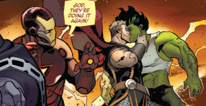 Another great angle that this series highlights is how Marvel combines lore from various cultures and religions to produce a unified mythology. We have Norse gods, Christian demons, and sorcerer supremes all intermingling to create a new history which will hopefully be misinterpreted in the far future as our species’ true origins when post-apocalyptic humans discover these “ancient texts” buried in a nerd’s basement. Glory unto you oh Stan of most high. Your prophet Allen maintained a sacred tabernacle of your teachings right next to his invaluably informative collection of small cards of people running with balls.