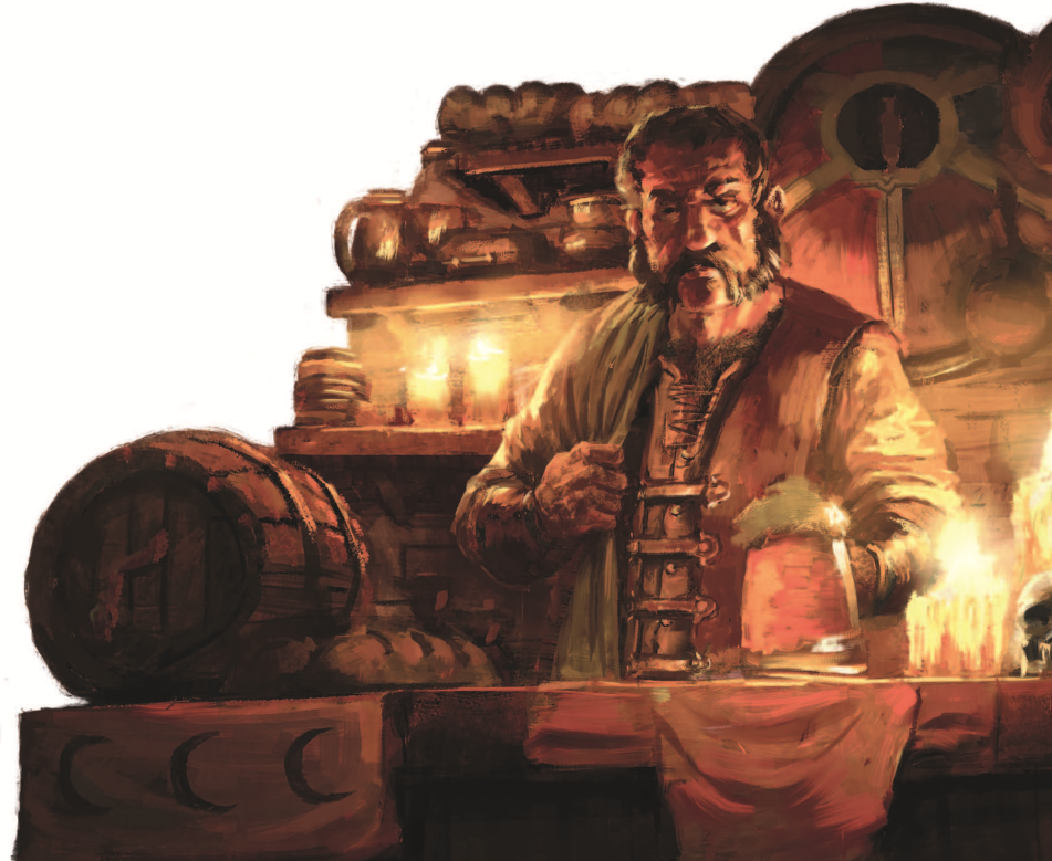 Welcomed into the august establishment after displaying a strong interest in good ale and a penchant for spending every coin they carry, the adventurers soon befriend three Dwarves named Gottri, Slugni, and Frotz. They learn about the sad fate of the once-noble Harataki clan, why you shouldn’t confuse local Borgun’s Brewery with the renowned Bugman’s, and who they should speak to about commissioning a blackpowder device appropriate for their mission.